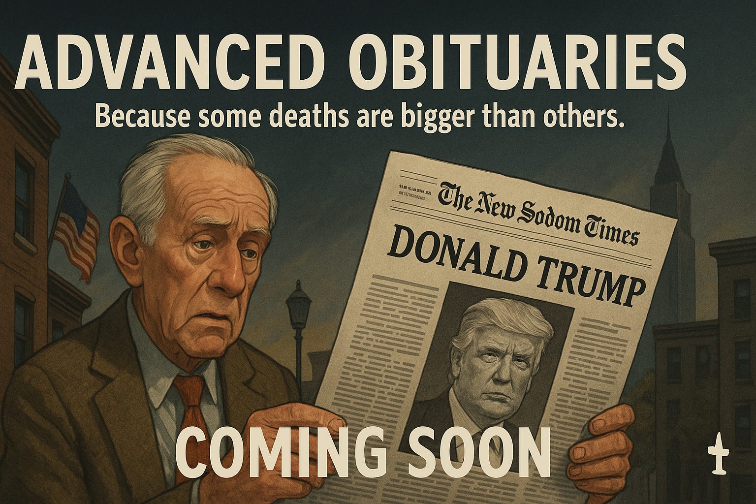 An advanced obituary isn’t just a prewritten death notice for a VIP sitting in a newsroom drawer. It’s a lens. A way to look at the living dead—tyrants, technocrats, billionaires, and other permanent fixtures—through the obituary they deserve but will never get.